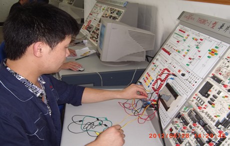 2012年6月28日,富春环保选派了徐尧萍、姜华军、姜洪钧、彭鲁东4名维修电工应邀参加了本次比赛。本次比赛共有5支参赛队伍,20余名参赛选手参加了理论知识及实际操作两轮激烈角逐。在上午进行的理论知识考试中,参赛选手接受了维修电工高级工职业标准命题的理论知识考试,从电路和磁路、仪器仪表、电子电路、电机及电力拖动、自动控制知识、供配电技术、先进控制技术、以及机械、液、气压传动相关等8个理论知识模块的综合考试。下午进行实际操作部分,考验的是参赛选手的实际动手能力,参赛选手进行了电子线路设计安装与调试和PLC控制电路的设计、接线与调试二大模块的竞技。